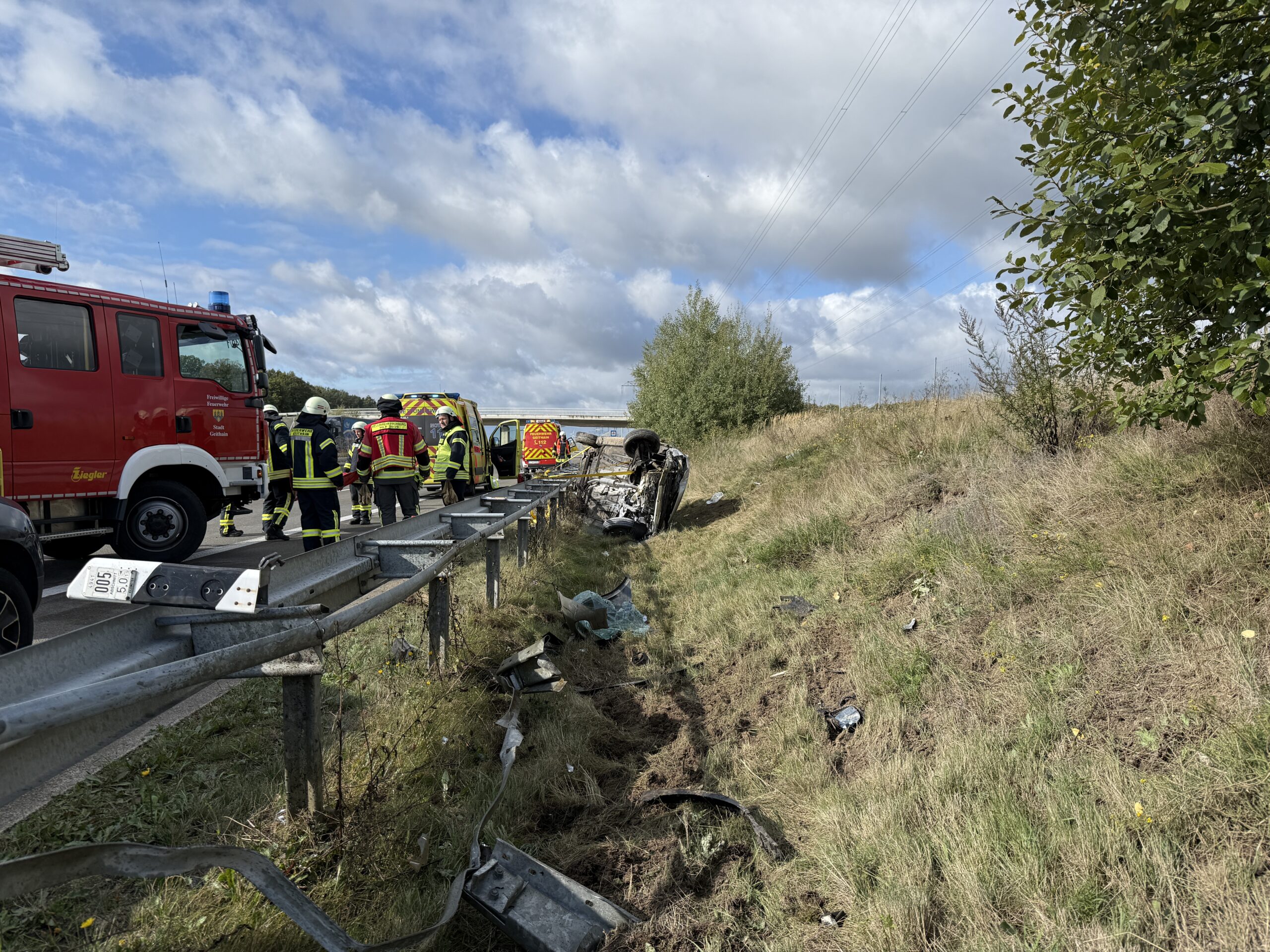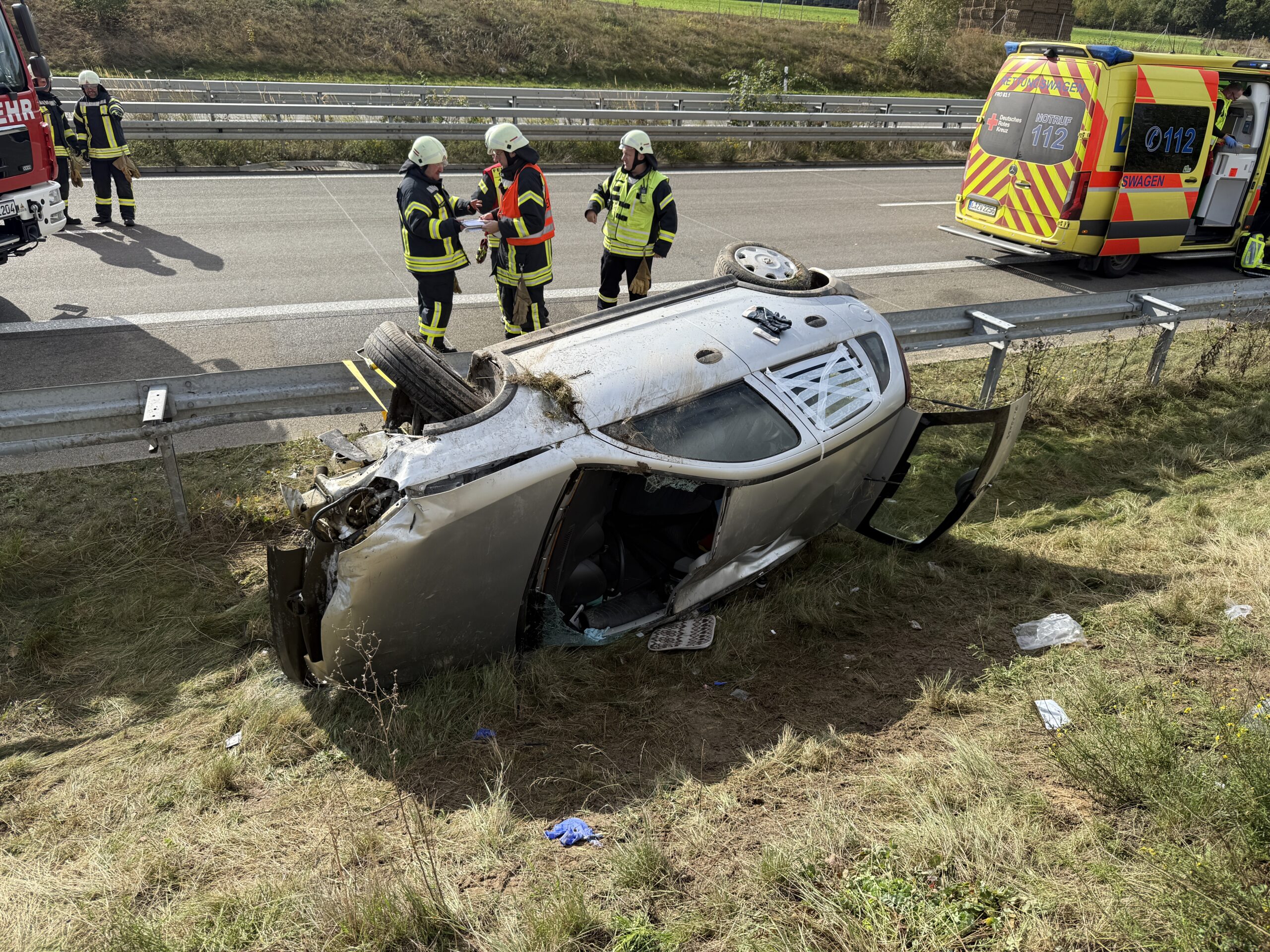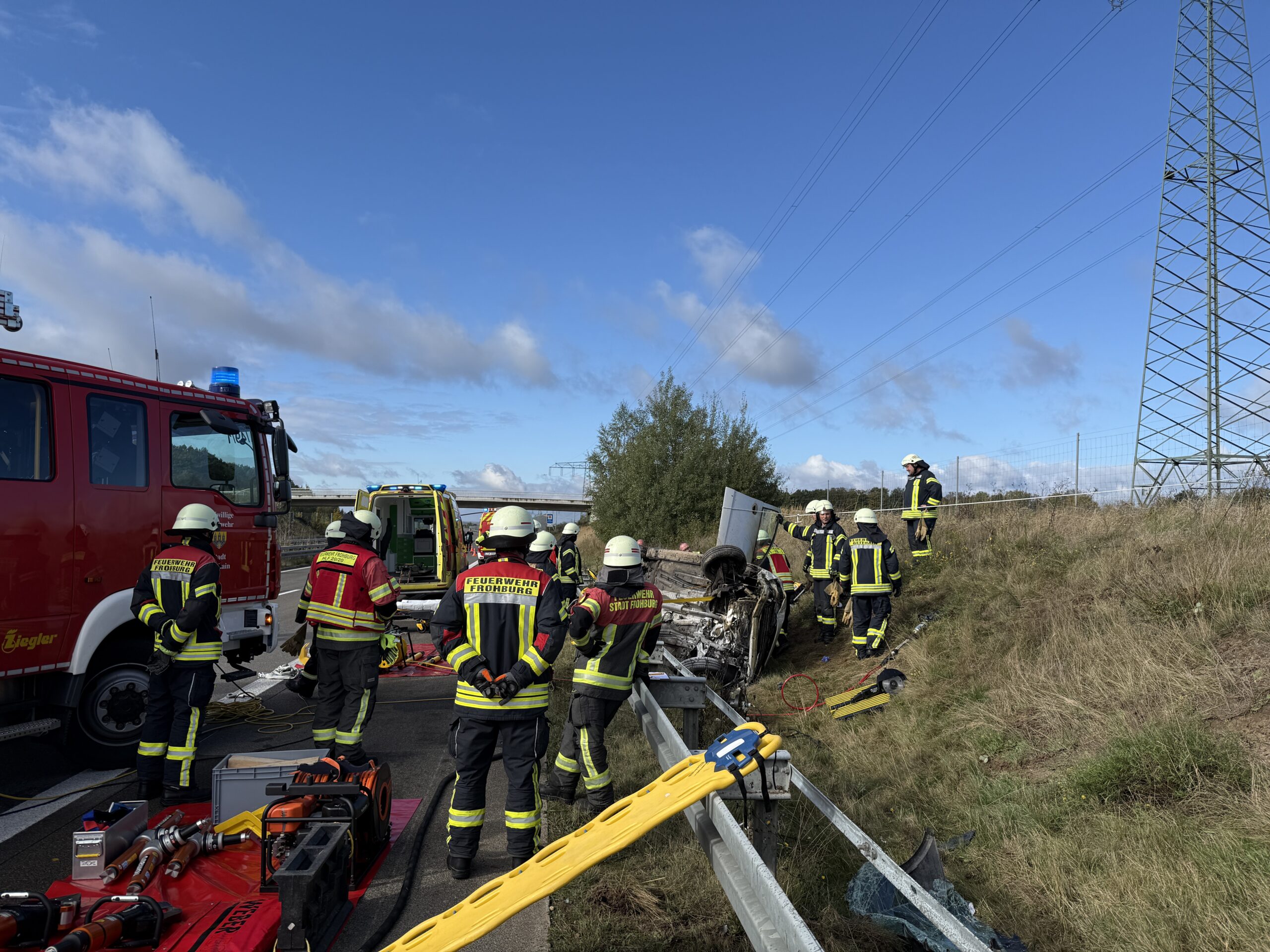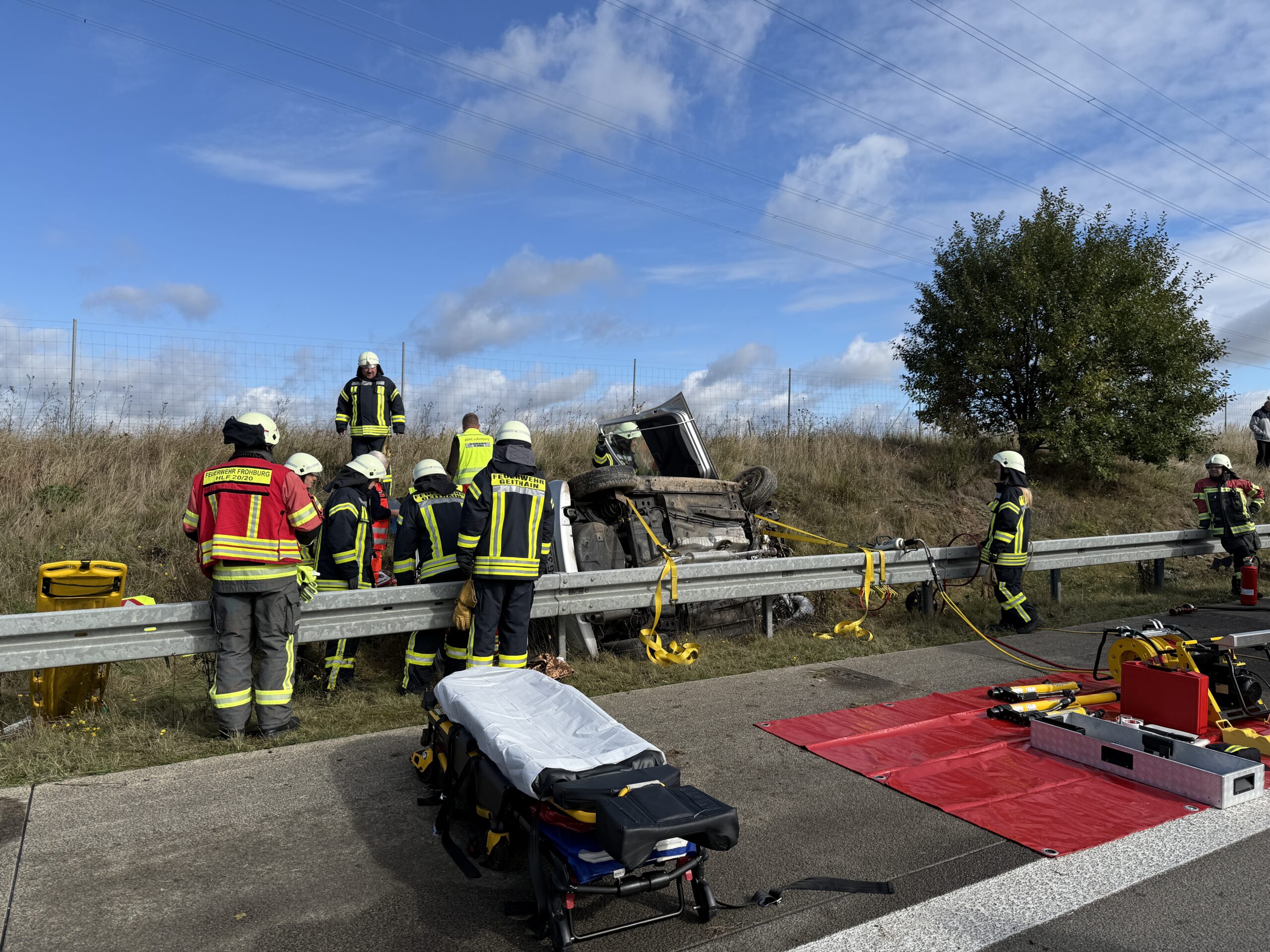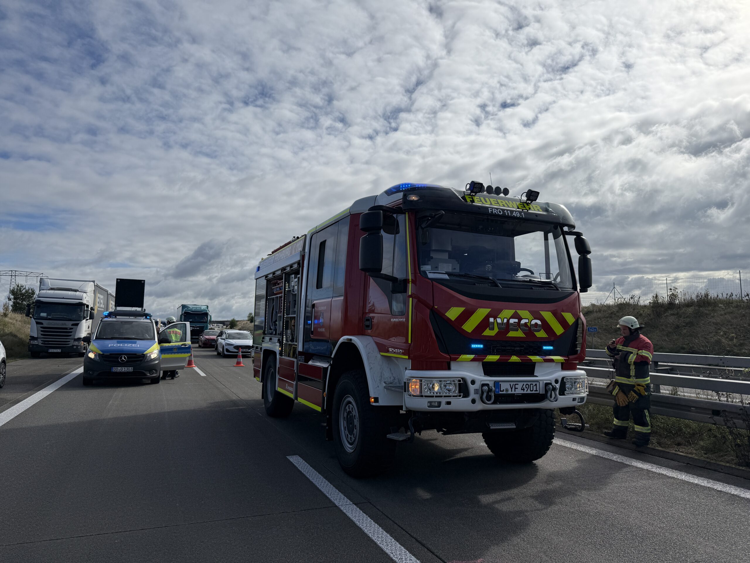 Datum/Uhrzeit: Einsatzort: Einsatzleiter: Kräfte und Mittel: Weitere Kräfte: Bericht: Alarmierung zu einem schweren Verkehrsunfall auf die Bundesautobahn 72 in Fahrtrichtung Leipzig. Der Unfall ereignete sich zwischen den Anschlussstellen Geithain und Borna-Süd. Ein PKW war aus bisher ungeklärter Ursache von der Fahrbahn abgekommen, hatte sich überschlagen und kam im Seitenbereich zum Liegen. Der Fahrer wurde dabei schwer verletzt und befand sich bei Eintreffen der Feuerwehr noch im Fahrzeug. Die Kameraden der Feuerwehr Geithain sicherten das Unfallfahrzeug und schafften eine Zugangsöffnung für den Rettungsdienst. Wir standen mit unserem hydraulischen Rettungsgerät in Bereitschaft, um bei einer möglichen technischen Rettung zu unterstützen. Der Rettungsdienst versorgte den Patienten im Fahrzeug. Die Person wurde anschließend patientengerecht mittels Spineboard aus ihrem Fahrzeug befreit und an den Rettungsdienst übergeben. Nach Abschluss aller Maßnahmen und Rücksprache mit dem Einsatzleiter der Feuerwehr Geithain konnten wir den Einsatz nach etwa einer Stunde beenden.