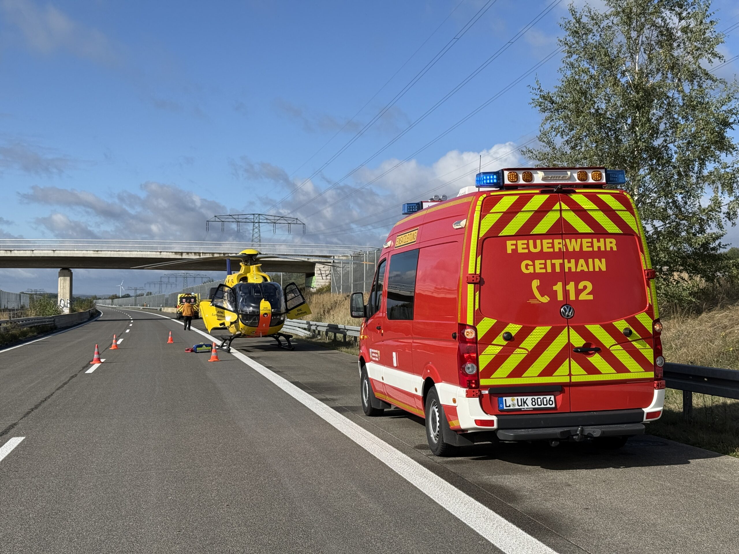 Autobahnpolizei, Feuerwehr Geithain, Rettungsdienst, RTH Christoph 61