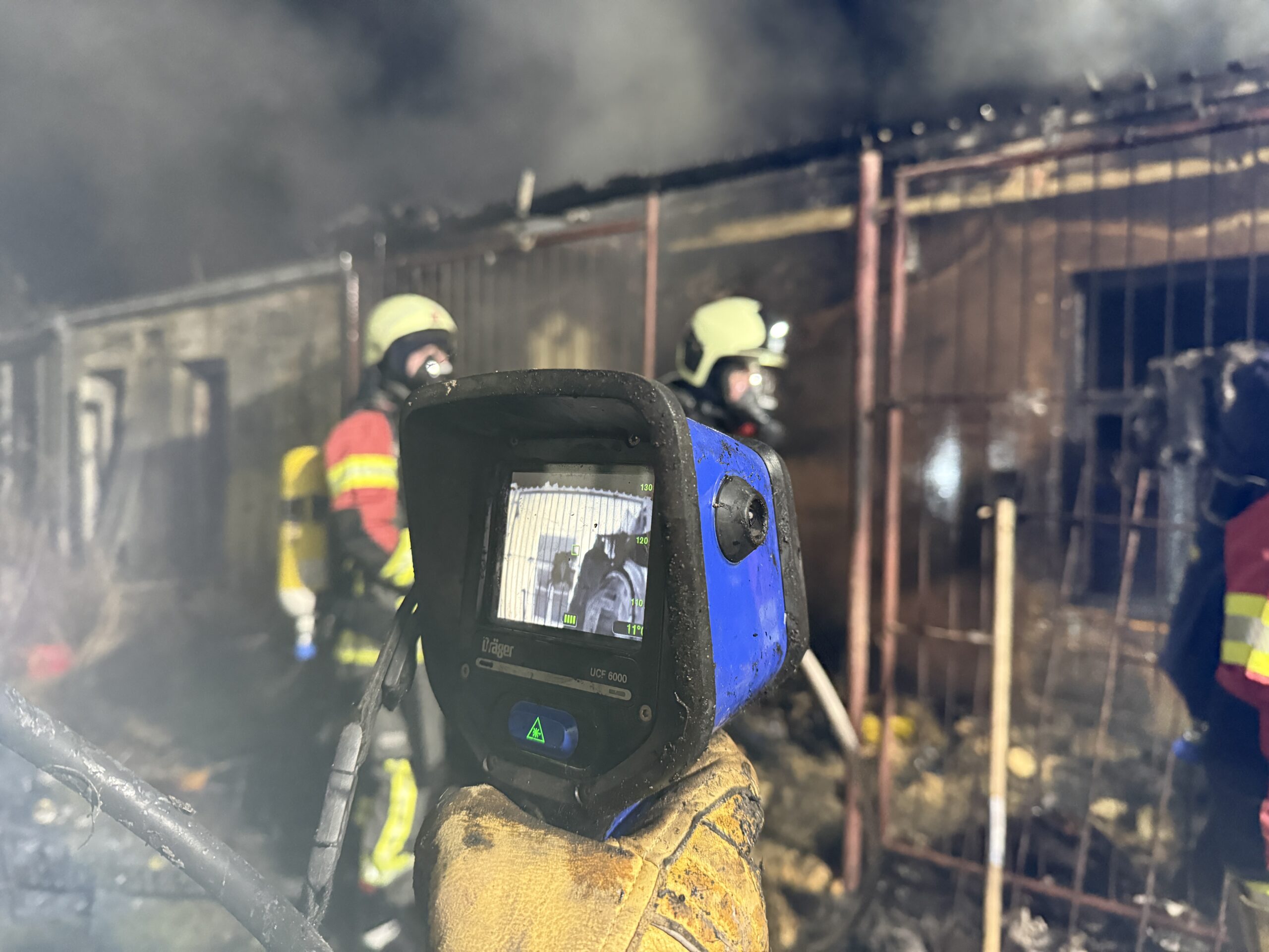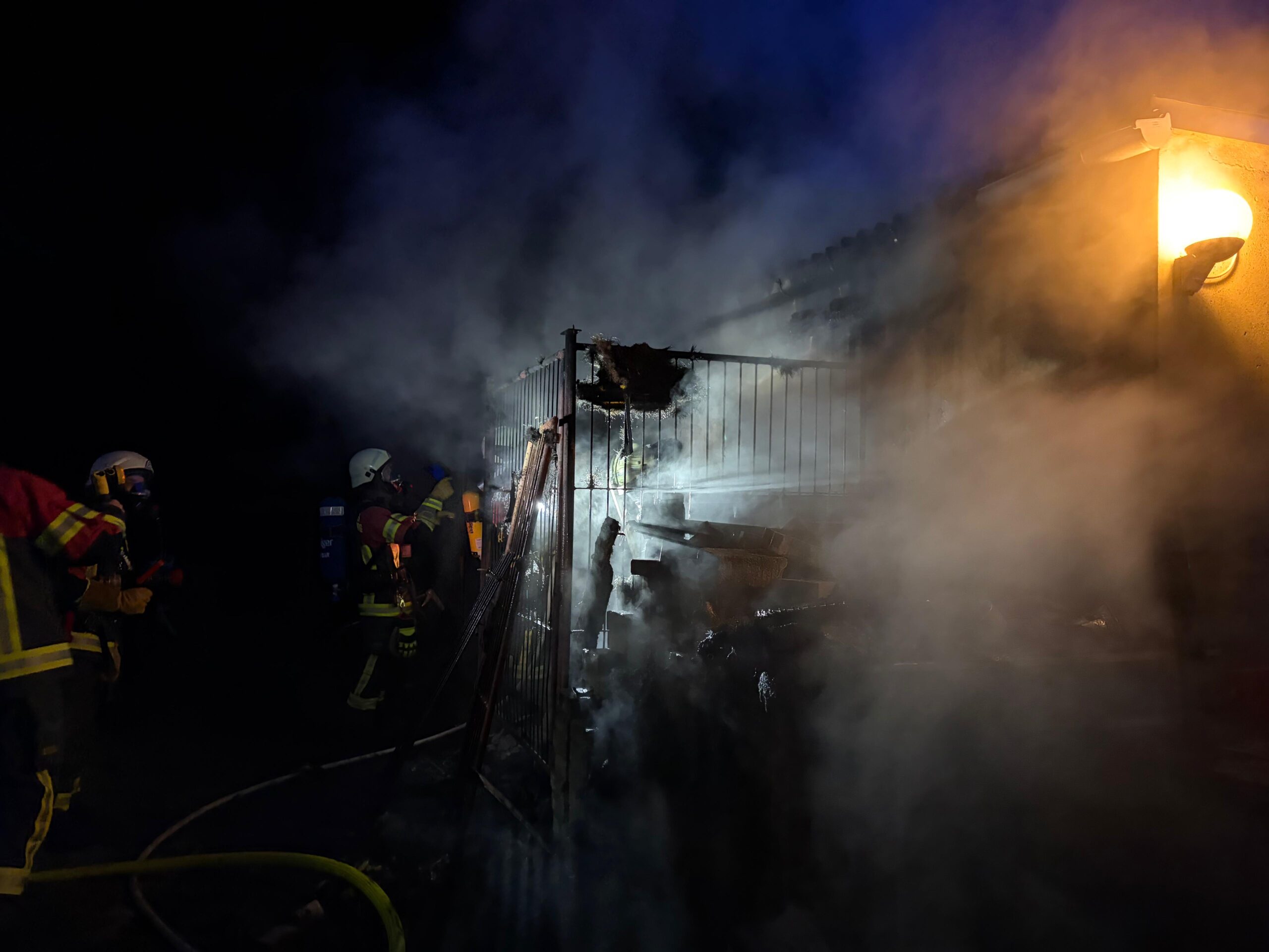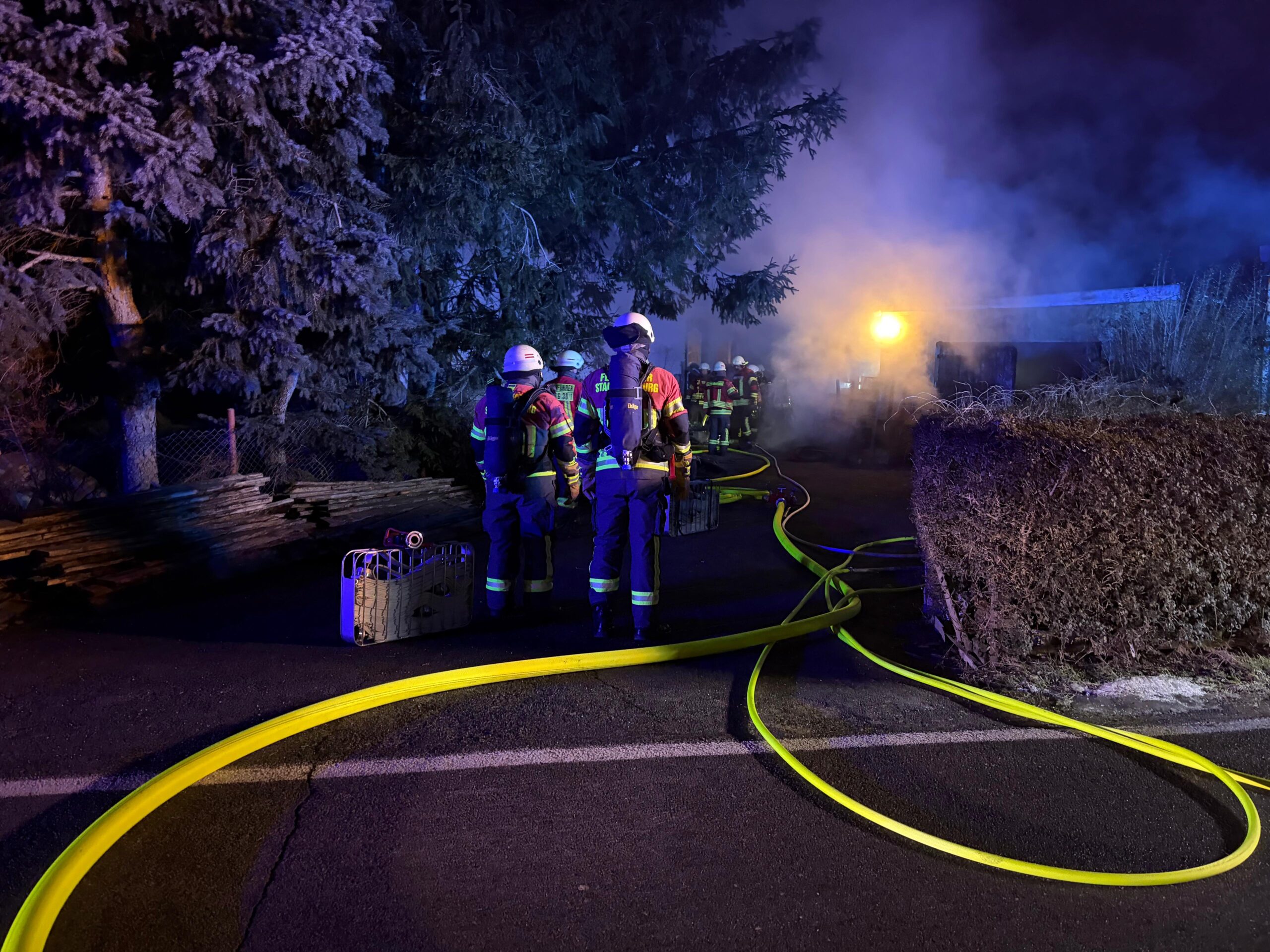 Datum/Uhrzeit: Einsatzort: Einsatzleiter: Kräfte und Mittel: Weitere Kräfte: Bericht: Brand eines Holzzwingers an einer Garage. Beim Eintreffen an der Einsatzstelle stand das betroffene Objekt im Vollbrand und hatte bereits auf Teile der Garage übergegriffen. Umgehend wurde die Brandbekämpfung durch unseren Angriffstrupp sowie einen Trupp der Feuerwehr Roda eingeleitet. Durch das schnelle und koordinierte Vorgehen konnte eine weitere Ausbreitung des Feuers verhindert werden. Im weiteren Verlauf wurden die betroffenen Holzteile auseinandergezogen und Bauteile der Garage teilweise geöffnet, um an verdeckte Glutnester zu gelangen. Dadurch konnten alle Brandstellen gezielt abgelöscht werden. Das Feuer wurde zügig unter Kontrolle gebracht. Anschließend erfolgte die Restablöschung sowie eine gründliche Kontrolle der Einsatzstelle mit der Wärmebildkamera. Nach Abschluss aller Maßnahmen wurde die Einsatzstelle an die Feuerwehr Roda sowie die Polizei übergeben.