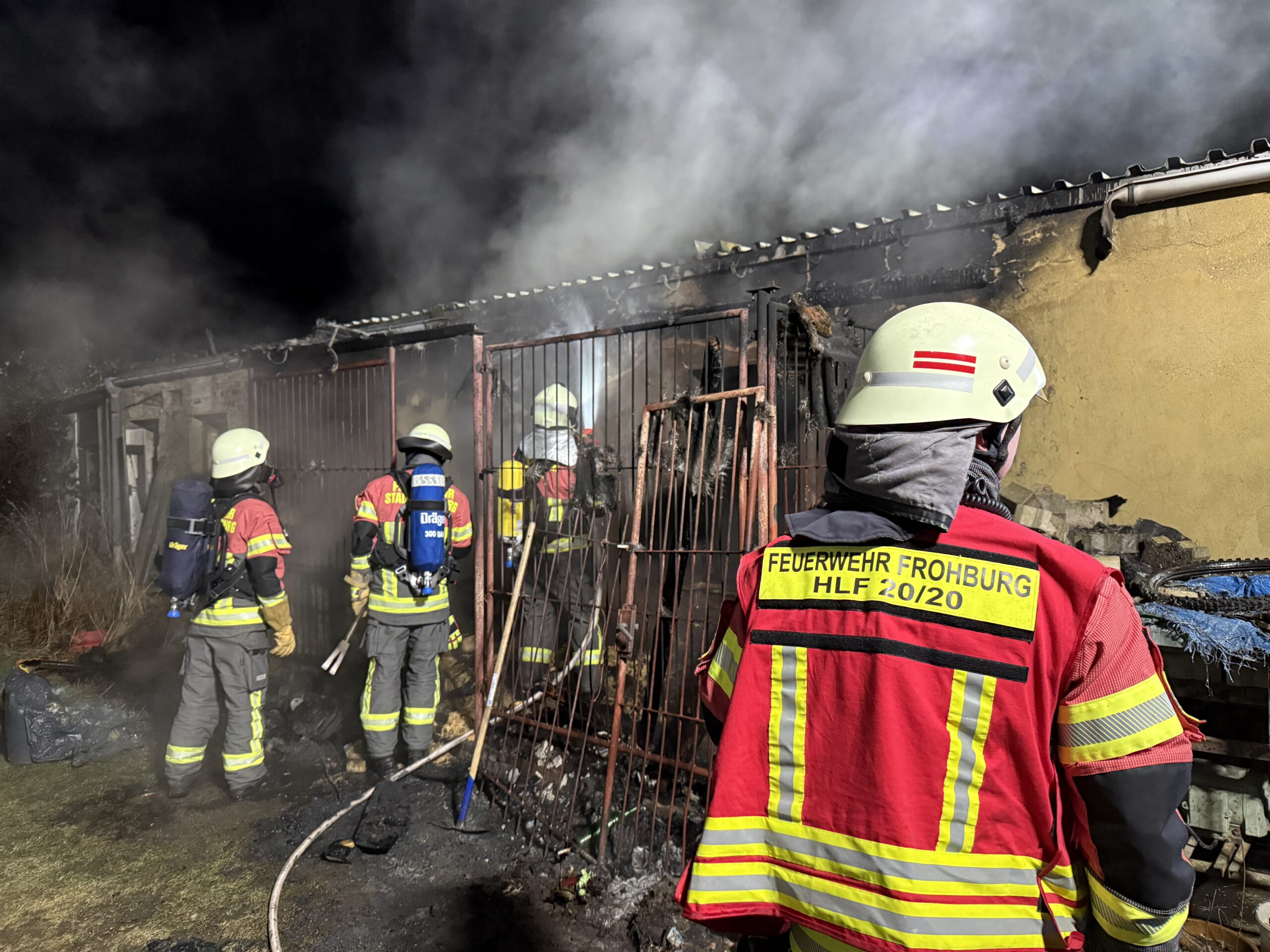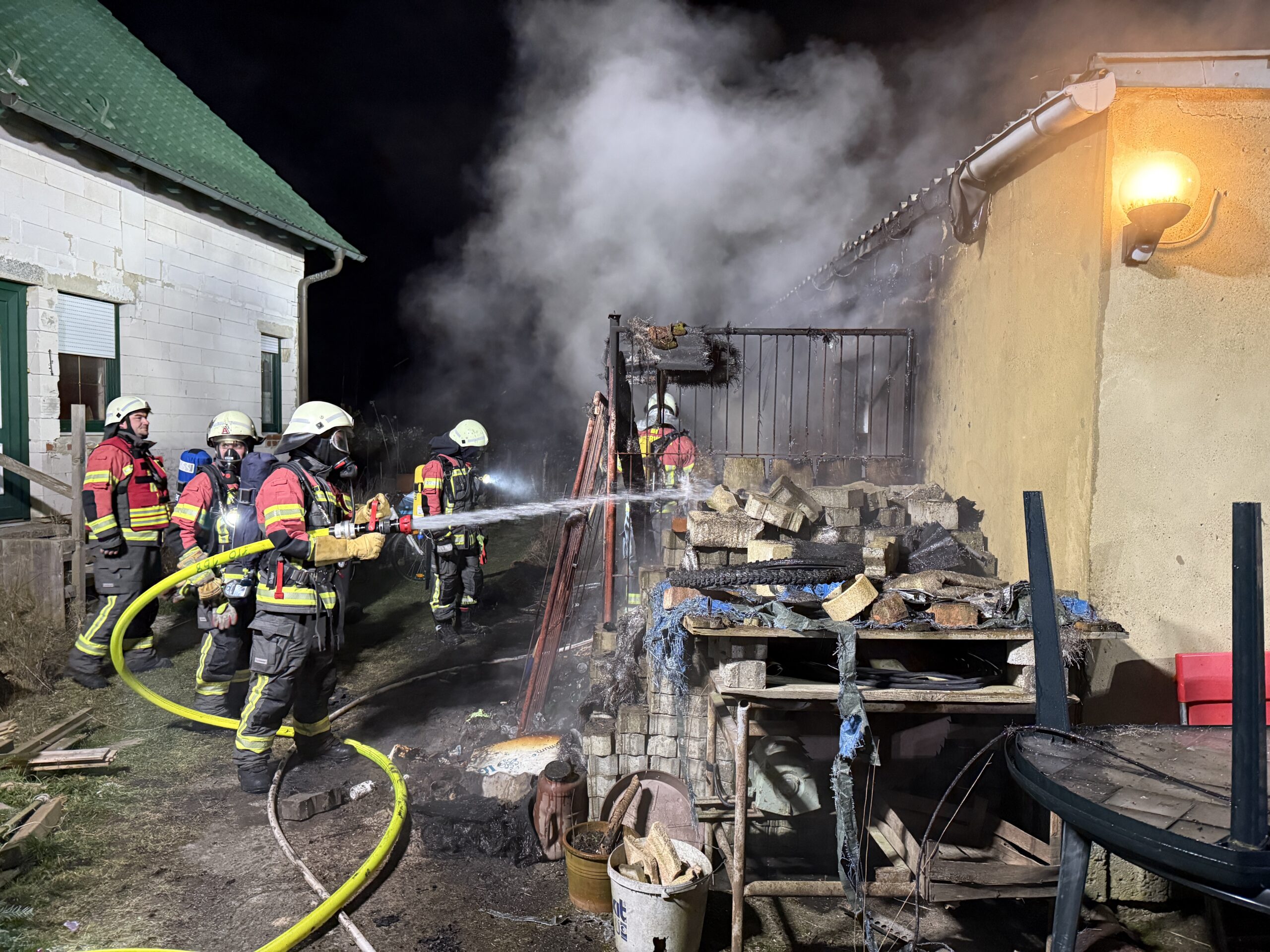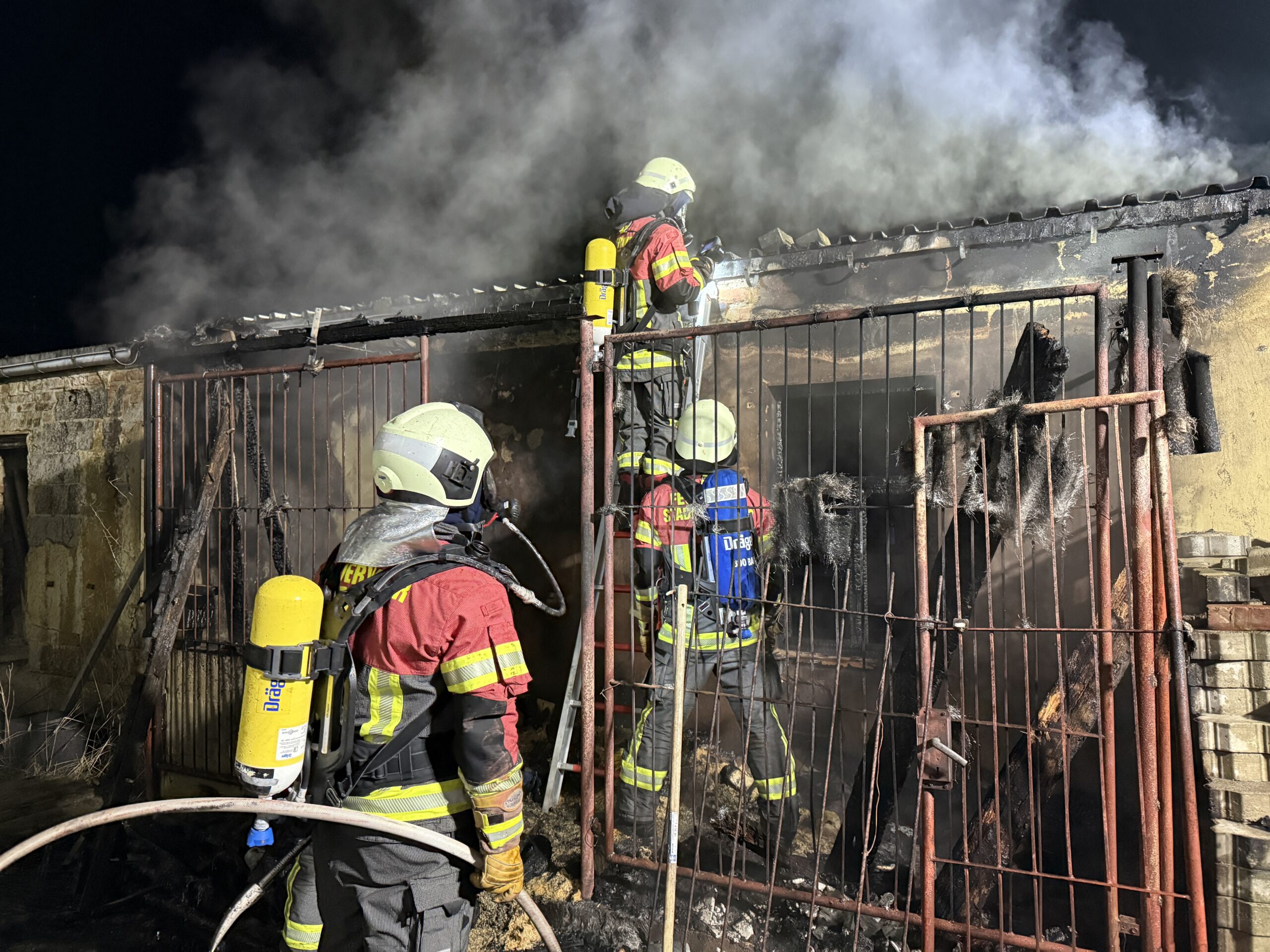 Datum/Uhrzeit: Einsatzort: Einsatzleiter: Kräfte und Mittel: Weitere Kräfte: Bericht: Brand eines Holzzwingers an einer Garage. Beim Eintreffen an der Einsatzstelle stand das betroffene Objekt im Vollbrand und hatte bereits auf Teile der Garage übergegriffen. Umgehend wurde die Brandbekämpfung durch unseren Angriffstrupp sowie einen Trupp der Feuerwehr Roda eingeleitet. Durch das schnelle und koordinierte Vorgehen konnte eine weitere Ausbreitung des Feuers verhindert werden. Im weiteren Verlauf wurden die betroffenen Holzteile auseinandergezogen und Bauteile der Garage teilweise geöffnet, um an verdeckte Glutnester zu gelangen. Dadurch konnten alle Brandstellen gezielt abgelöscht werden. Das Feuer wurde zügig unter Kontrolle gebracht. Anschließend erfolgte die Restablöschung sowie eine gründliche Kontrolle der Einsatzstelle mit der Wärmebildkamera. Nach Abschluss aller Maßnahmen wurde die Einsatzstelle an die Feuerwehr Roda sowie die Polizei übergeben.