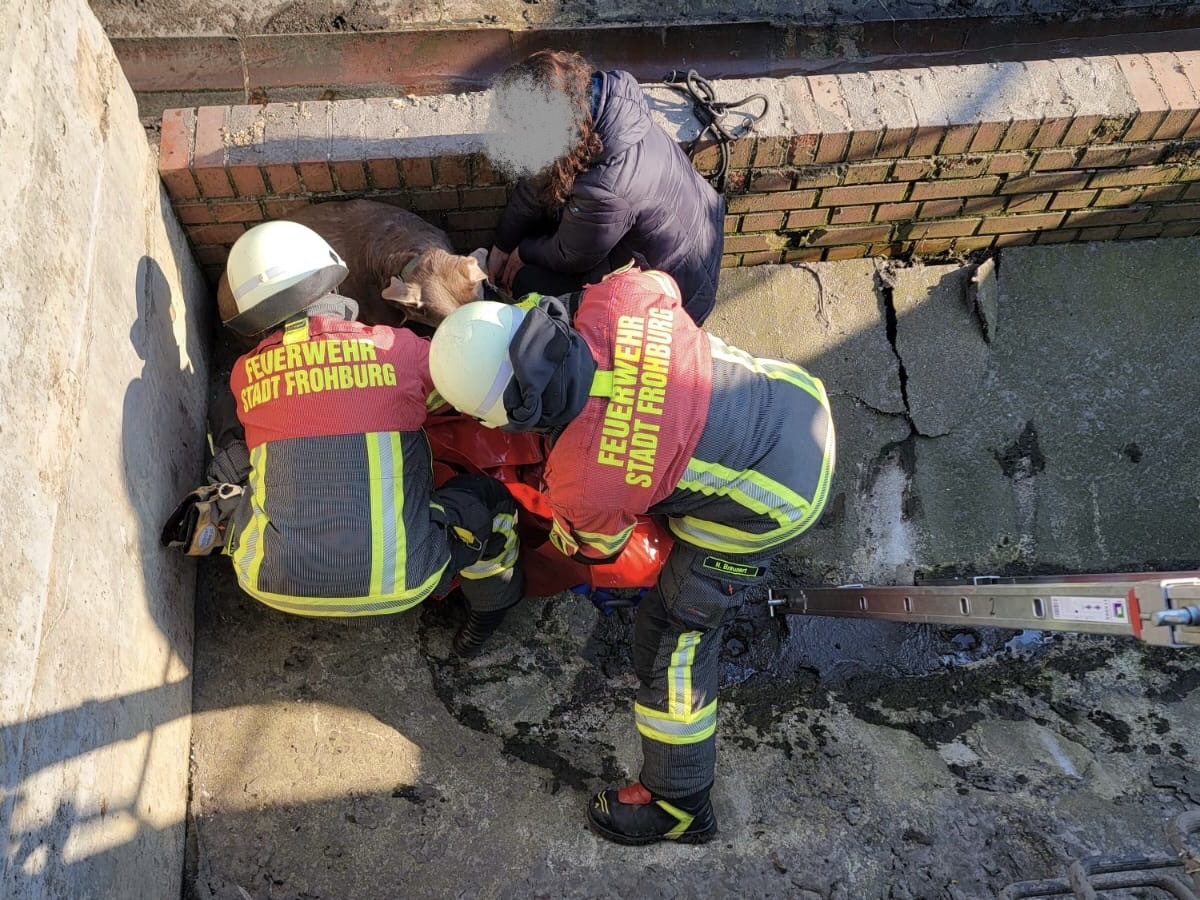 Datum/Uhrzeit: Einsatzort: Einsatzleiter: Kräfte und Mittel: Weitere Kräfte: Bericht: Ein Hund und dessen Besitzer saßen in einer ca. 3m tiefen Abwassergrube fest. Die Rettung wurde mittels Steckleiter und einem Tragetuch durchgeführt.