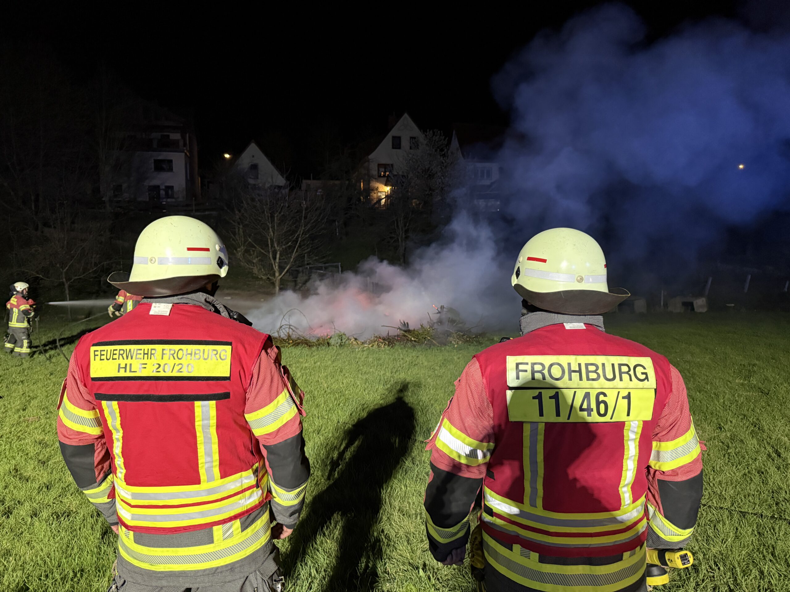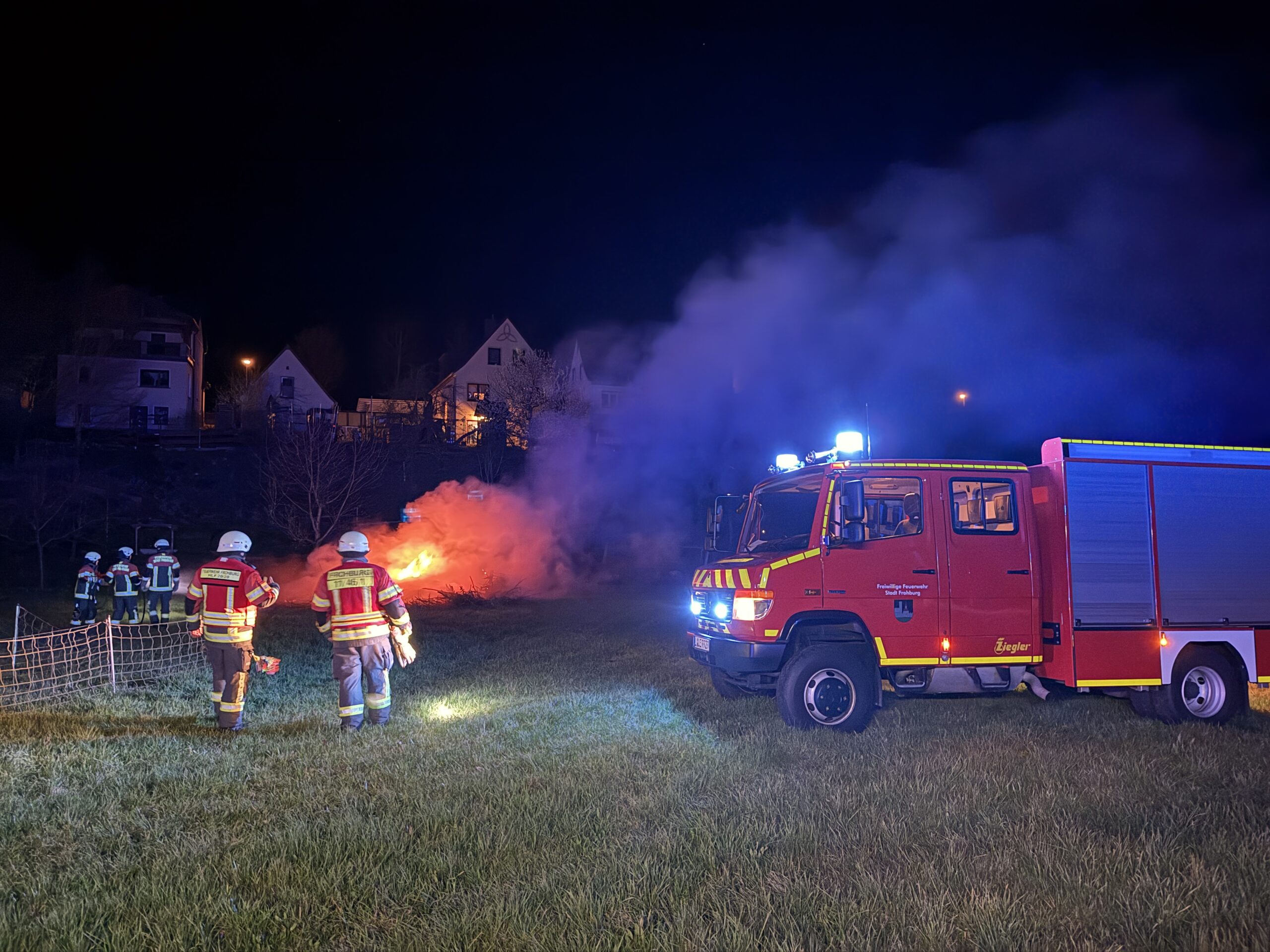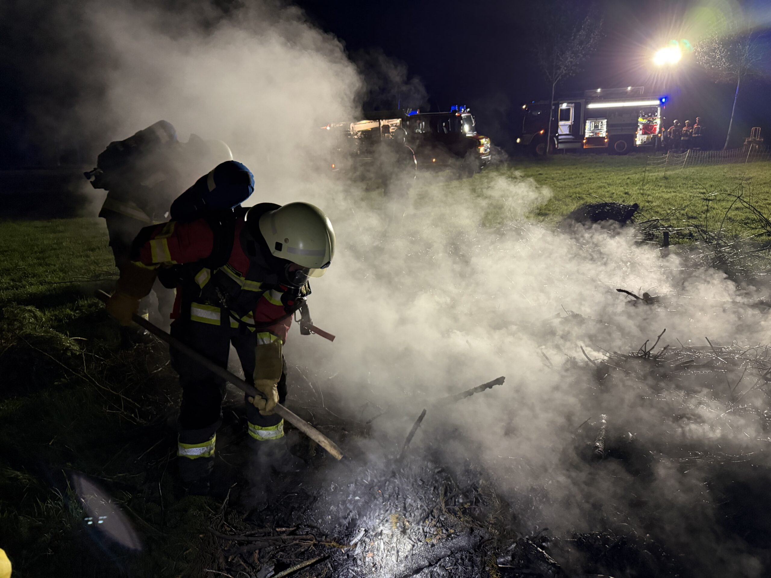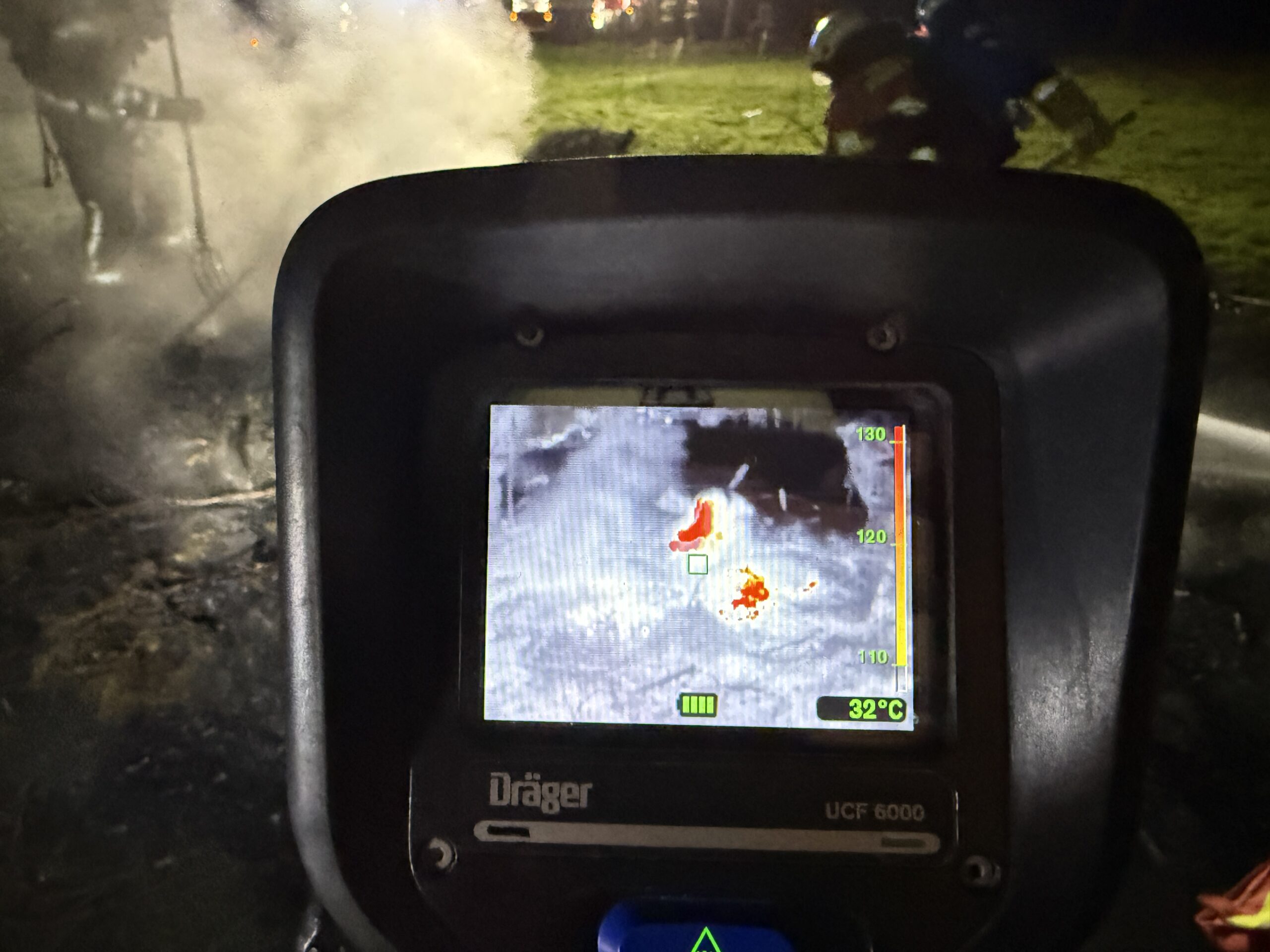 Datum/Uhrzeit: Einsatzort: Einsatzleiter: Kräfte und Mittel: Weitere Kräfte: Bericht: Gemeldet wurde ein Brand im Bereich des alten Wasserwerks zwischen den Ortslagen Frohburg und Greifenhain. Vor Ort bestätigte sich die gemeldete Lage jedoch nur teilweise. Es brannte ein etwa 100 m² großer Haufen aus Unrat und Grünschnitt auf einer angrenzenden Wiese. Die Brandbekämpfung wurde umgehend mittels Hochdruckeinrichtung des Mittleren Löschfahrzeugs (MLF) eingeleitet. Parallel dazu ging ein Trupp des Hilfeleistungslöschgruppenfahrzeugs (HLF) unter schwerem Atemschutz vor. Mithilfe von Dunggabeln und Waldbrandhacken wurde das Brandgut auseinandergezogen und gezielt abgelöscht. Im weiteren Einsatzverlauf wurde die Brandstelle mit einer Wärmebildkamera kontrolliert. Dabei wurden Glutnester festgestellt, die sich bereits tiefer in das Erdreich ausgebreitet hatten. Entsprechend erfolgten umfangreiche Nachlöscharbeiten sowie eine zusätzliche Aufarbeitung des betroffenen Bodens. Zur Sicherstellung der Einsatzstellenhygiene wurde ein separater Ablageplatz für kontaminiertes Material eingerichtet. Zudem wurden die eingesetzten Trupps sowie deren verschmutzte und kontaminierte Schutzkleidung gesammelt und fachgerecht verpackt, um eine Verschleppung von Schadstoffen zu verhindern. Nach Abschluss aller Maßnahmen wurde die Einsatzstelle an die Polizei übergeben.