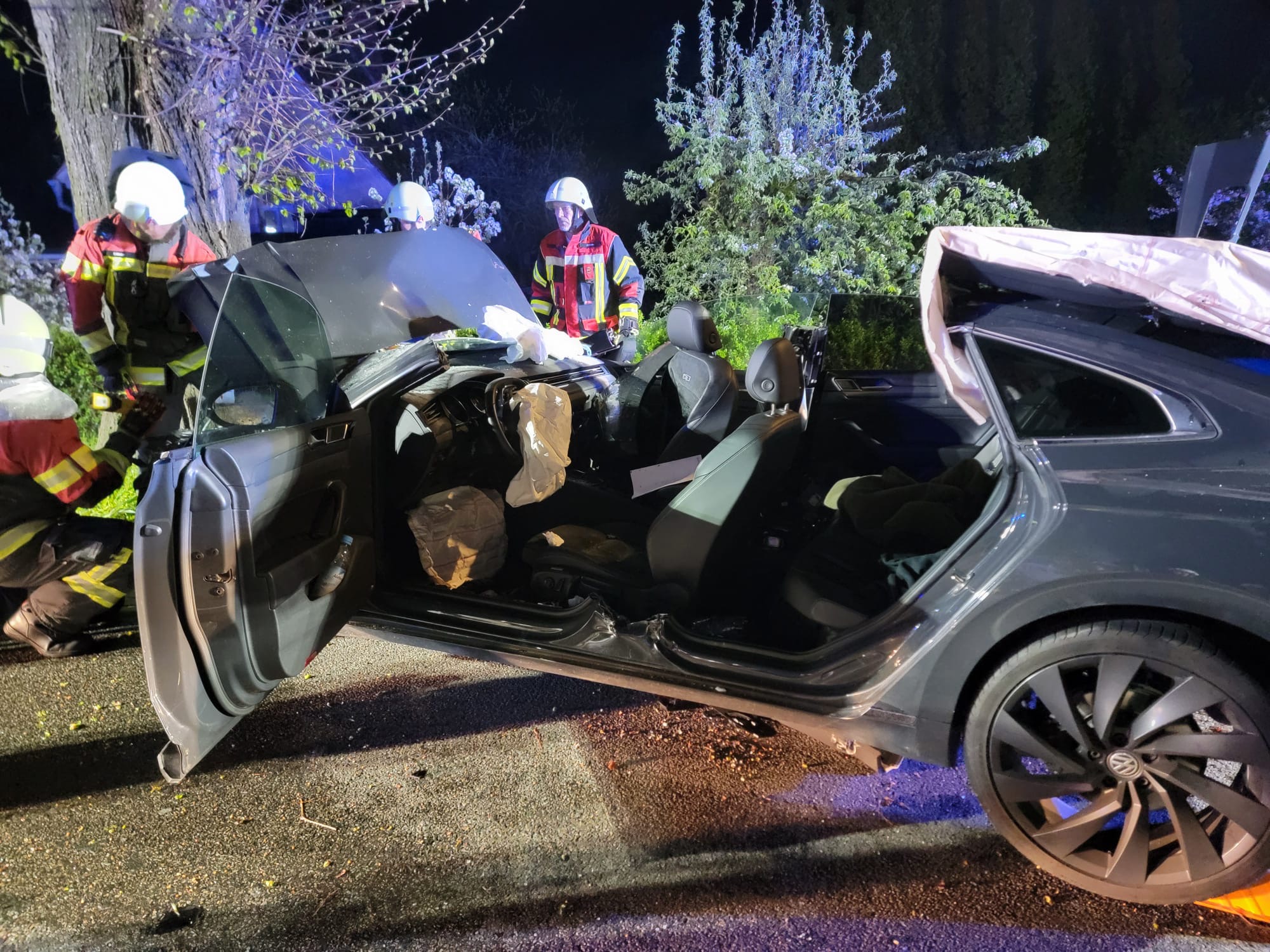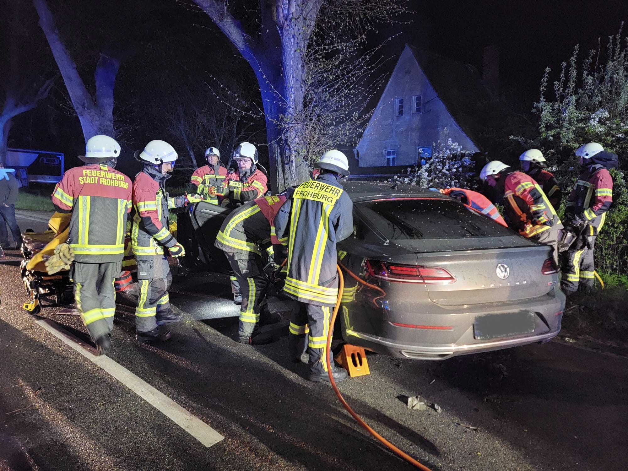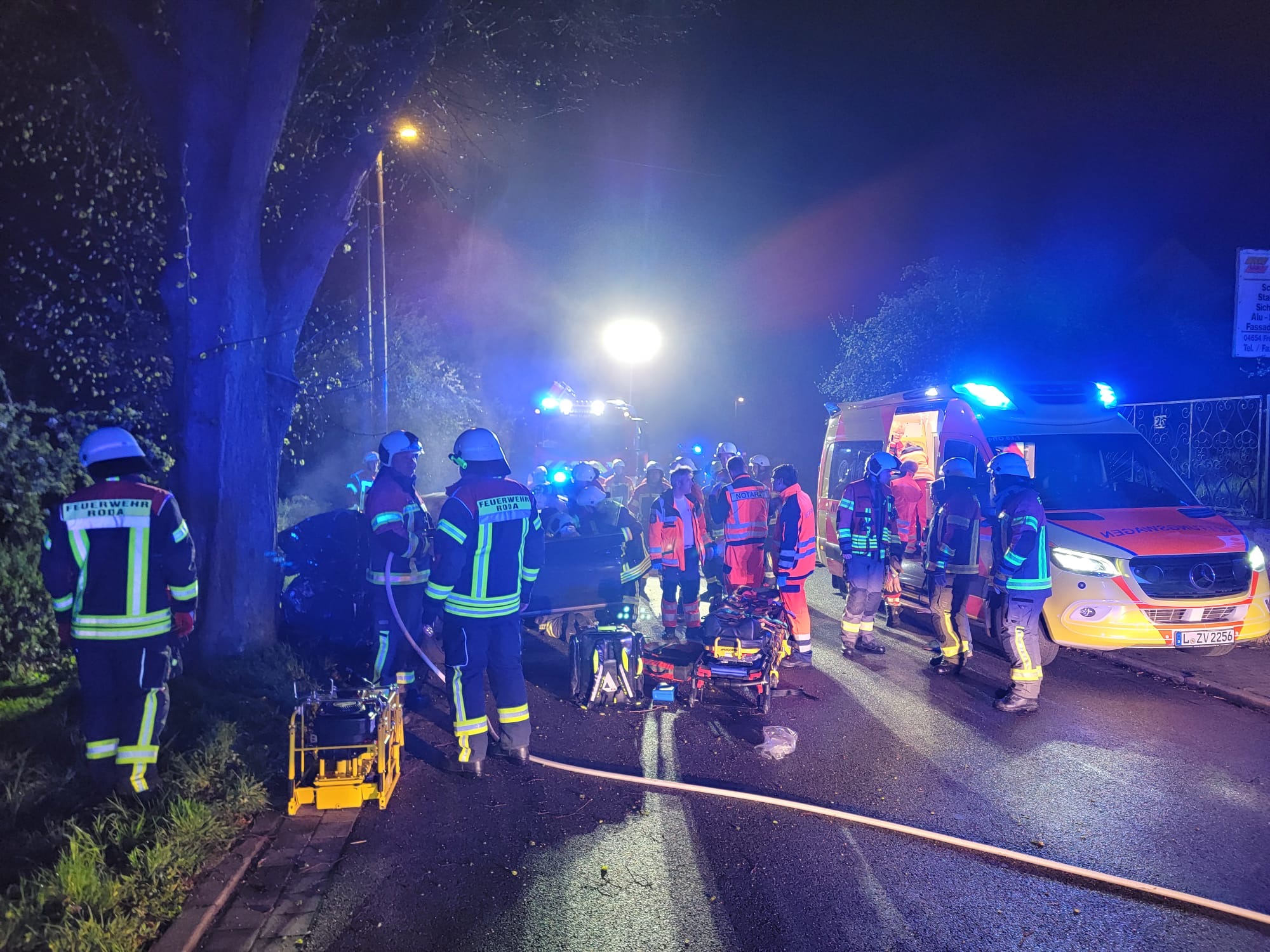 Datum/Uhrzeit: Einsatzort: Einsatzleiter: Kräfte und Mittel: Weitere Kräfte: Bericht: Am frühen Morgen kam es in der Ortslage Roda zu einem schweren Verkehrsunfall. Ein PKW kam aus bislang ungeklärter Ursache von der Fahrbahn ab und prallte mit erheblicher Wucht gegen einen Baum. Durch den Aufprall wurden drei Insassen schwer verletzt und in dem stark deformierten Fahrzeug eingeschlossen. In enger Zusammenarbeit mit der Feuerwehr Roda sowie dem Rettungsdienst erfolgte zunächst die medizinische Erstversorgung der verletzten Personen noch im Fahrzeug. Unter Einsatz von zwei hydraulischen Rettungsgeräten wurden die Personen anschließend aus ihrem Fahrzeug befreit. Aufgrund der Schwere der Verletzungen wurden alle drei Patienten nach der Rettung zur weiteren Behandlung in umliegende Krankenhäuser transportiert. Desweiteren wurde der Brandschutz sichergestellt sowie die Fahrbahn gegen den fließenden Verkehr gesichert. Während der gesamten Einsatzdauer war die Rodaer Dorfstraße vollgesperrt.
